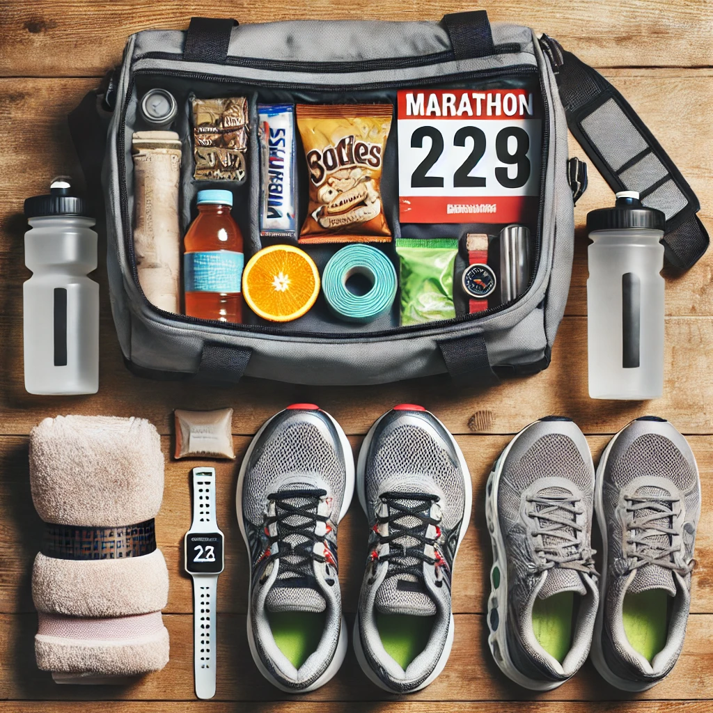 러닝화, 의류, 번호표, 젤, 물병 등 꼭 필요한 물품을 체크리스트로 정리해보세요.